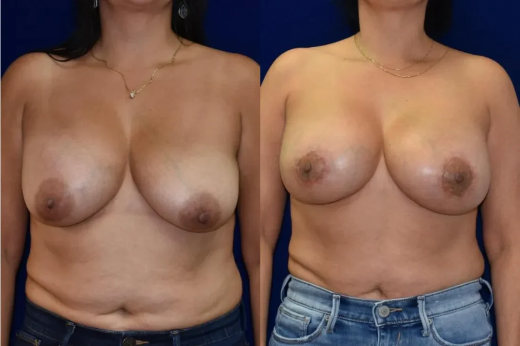 Preoperative Diagnosis: 1. Left breast implant deflation 2 2. . Breast ptosis 3. Breast asymmetry Procedure: Procedure: 1. Bilateral Re-augmentation mammoplasty with Silicone Implants, Moderate Profile Gummy 450cc 2. Right and Left Breast capsulatomy and pocket adjustment 3. Donut mastopexy with adjustment of areolae
