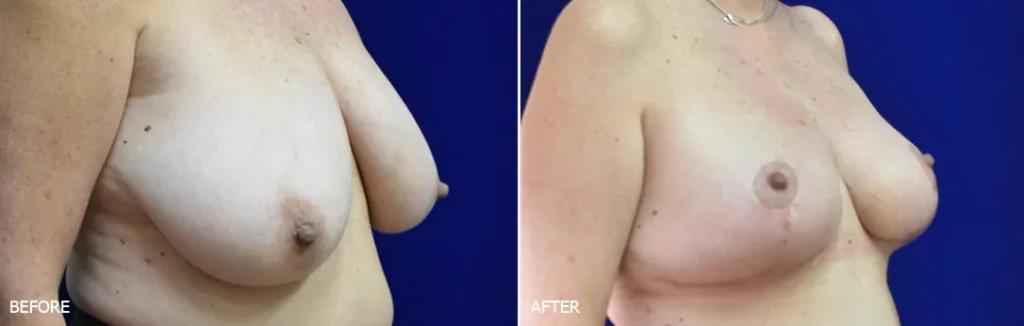 Living with heavy breasts caused her back and neck pain, along with an irritating rash beneath the folds. She longed for smaller, more proportionate breasts to feel better. Through breast reduction, Dr. Mashhadian relieved the excess weight, bringing her both comfort and balance.