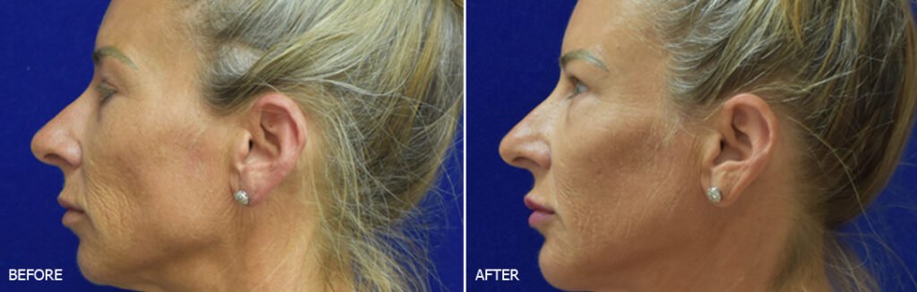 Facial Concerns: Botox and request lower facial improvements Treatment: Injected with Botox in the Frown Lines, Horizontal Lines with 30 units. Injected with Dysport in the Eyes- Crows Feet, Under Eyes with 60 units. Injected with Radiesse in the Chin, Pre-Jowl