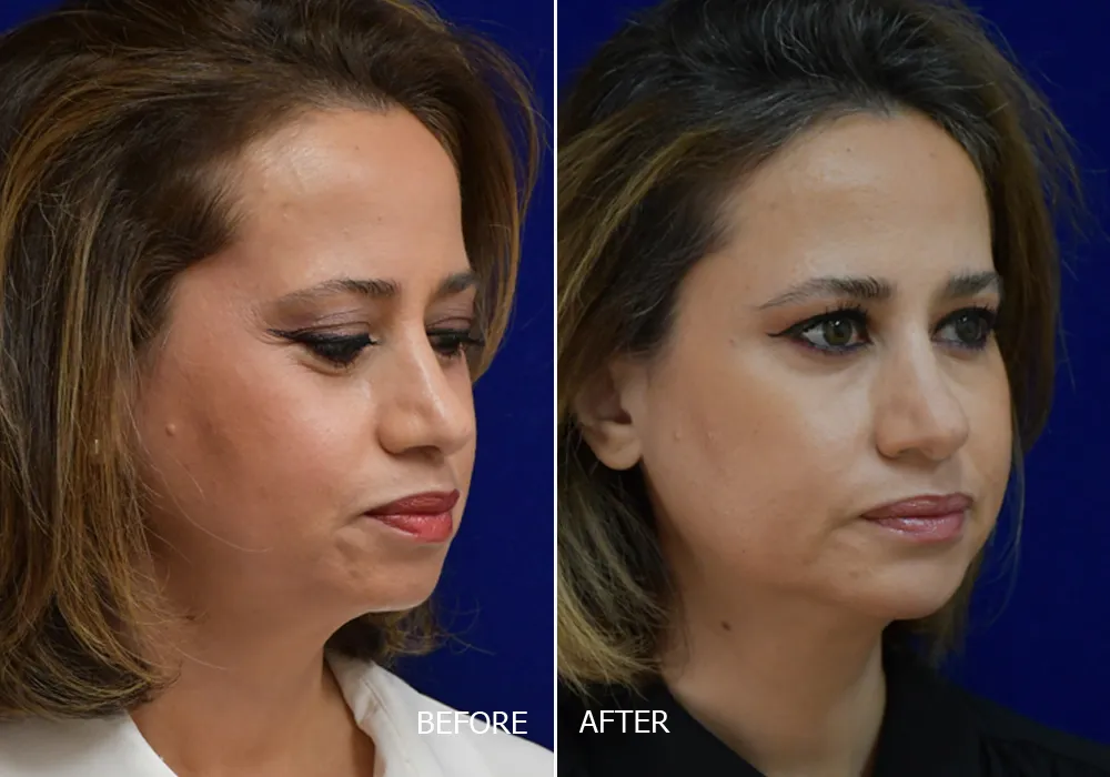Gallery Home / Neck & Jawline Contouring Case 2809 Procedures Performed Facial Fillers Details She was concerned about her smile lines and marionette lines near the jowl area and visited Dr. Mashhadian to restore smoothness and facial fullness. Restylane dermal filler was used to achieve her desired rejuvenated appearance. < Previous Next>