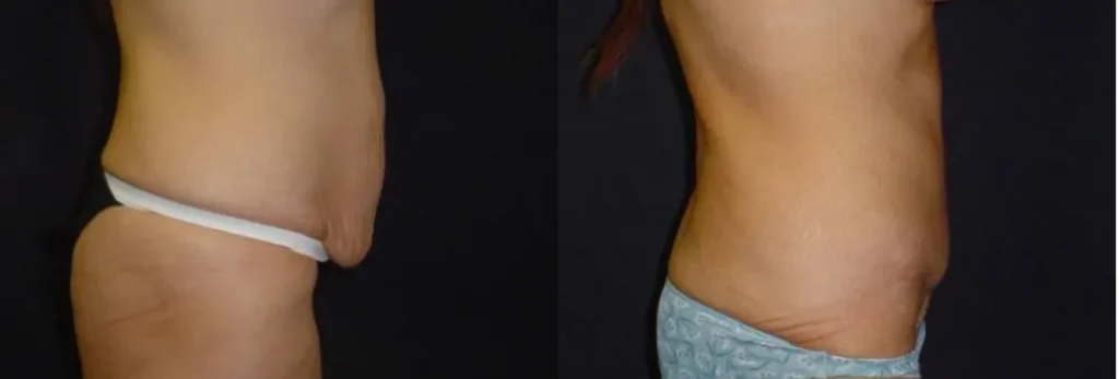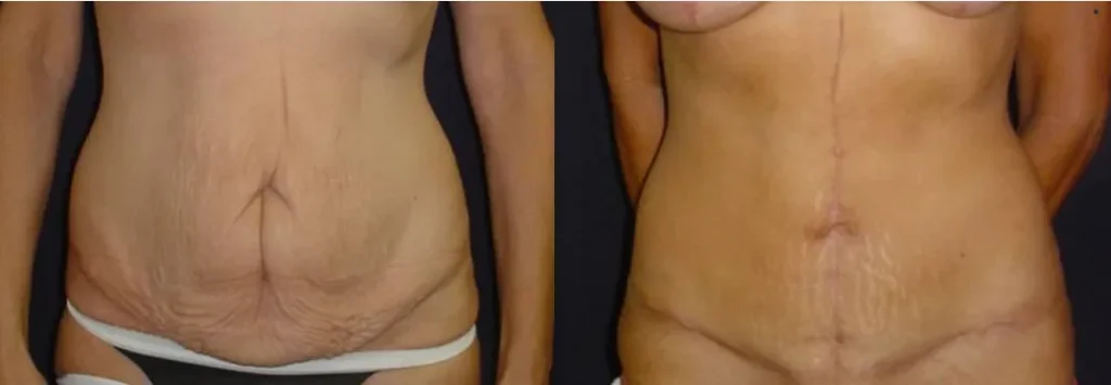 Having had Bariatric Surgery following her 3 pregnancies she went through a massive weight loss and was left with extreme excess of skin in her abdomen that stretched vertically and horizontally. To correct this Dr. Mashhadian preformed a Fleur de lis Adbominoplasty to remove the excess skin from all directions. Following the abdominoplasty procedure Dr. Mashhadian also preformed a breast augmentation to complete her look and give her a body she was proud of.