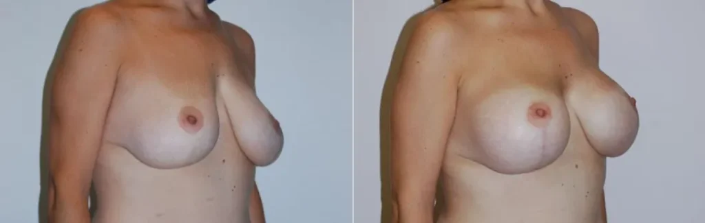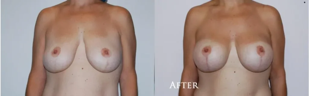 After having Gastric Bypass surgery and loosing fat tissue in her breast she came in with a complaint of breast relaxation. Having previously had a breast lift 10 years prior, Dr. Mashhadian gave her an inverted T lift along with adding Silicone Implants, Size 421cc, Style 15 to give her the look she desired.