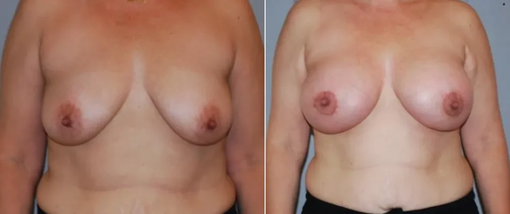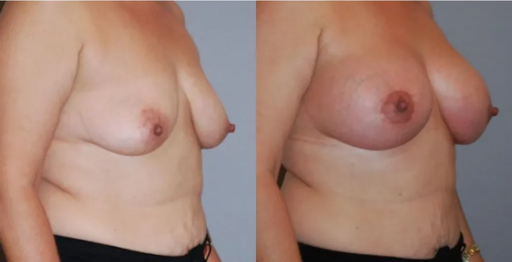 Natrelle Allergan Silicone Gel Breast Implants, Profile Moderate-Plus (Style 15), Size 492cc. The implants were inserted through Periareolar approach, place in the Under Muscle (submuscular plane). Minimal scarring technique used for Breast Lift, incision only around the areola, Donut Mastopexy.